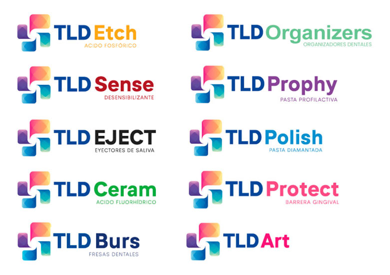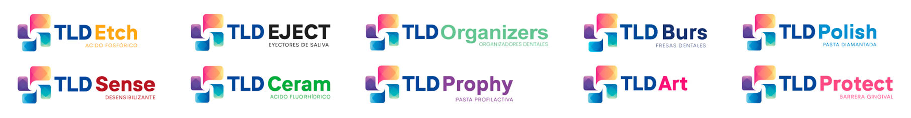 Nuestra línea propia TLD ofrece una gama completa de productos para cada etapa del tratamiento odontológico: desde el grabado ácido, protección gingival, hasta profilaxis, organización clínica y más.